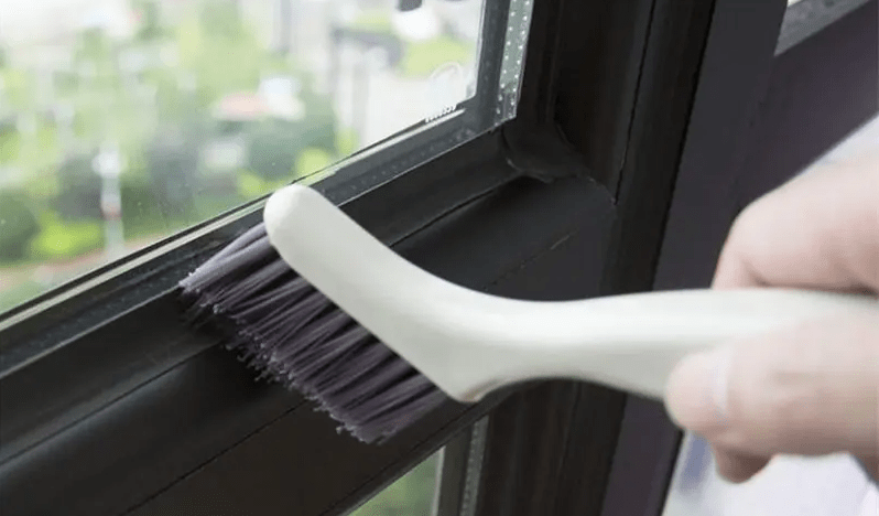窗框里面容易堆积灰尘和杂物,也是脏的位置,可以用软毛刷或是不用的小牙刷顺着一个方向把杂物都刷掉,然后用抹布塞进去擦洗,边角上还可以利用筷子等细小物品进行辅助清理。